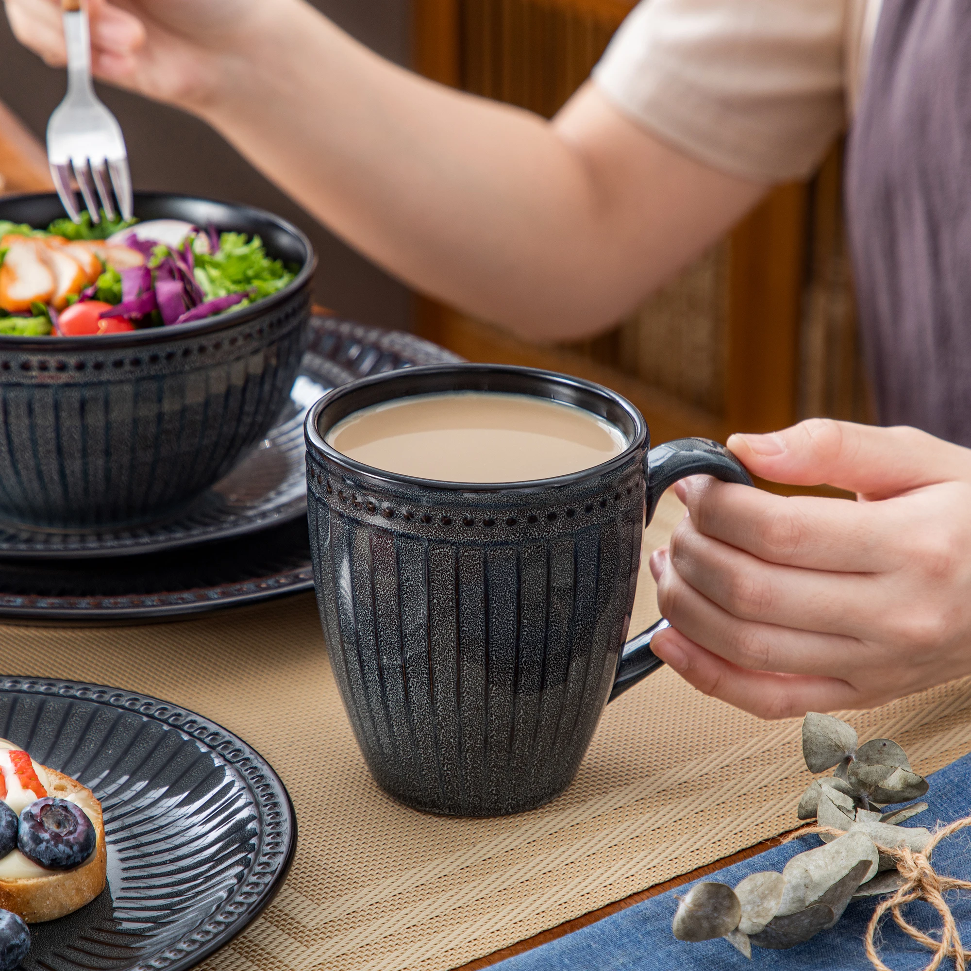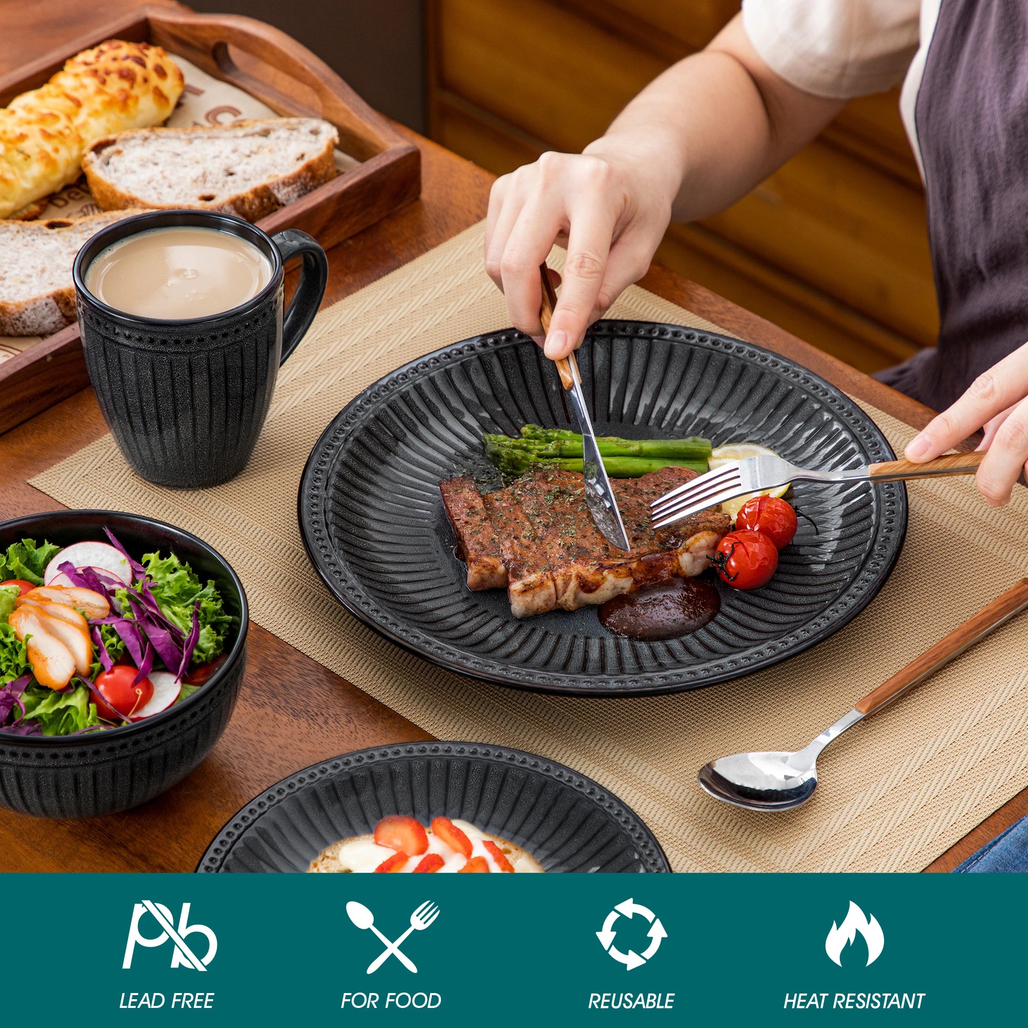 Vancasso Ceramic Plates Set Black Elegant Tableware set