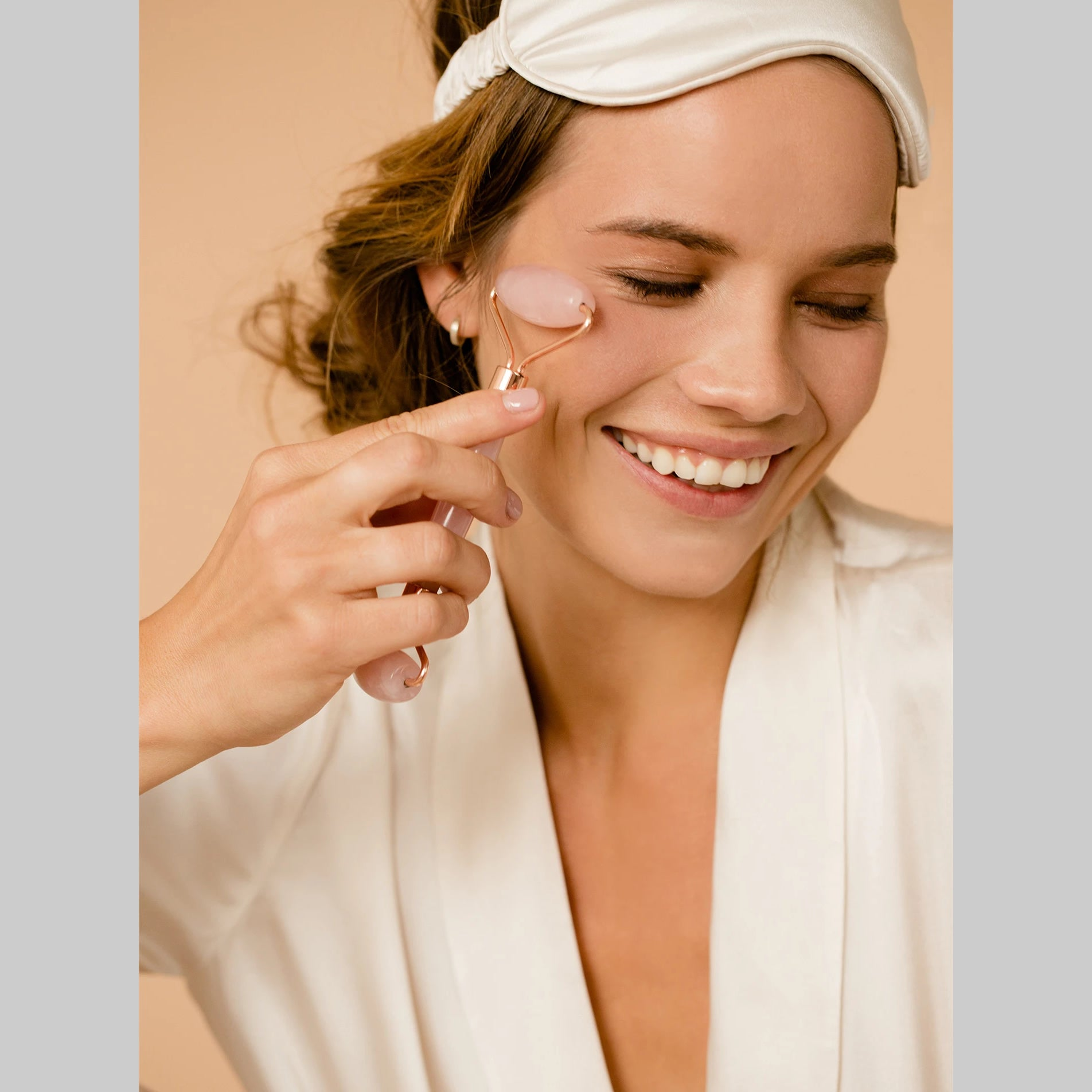 • Massage your face bottom-up with a large gem roller.