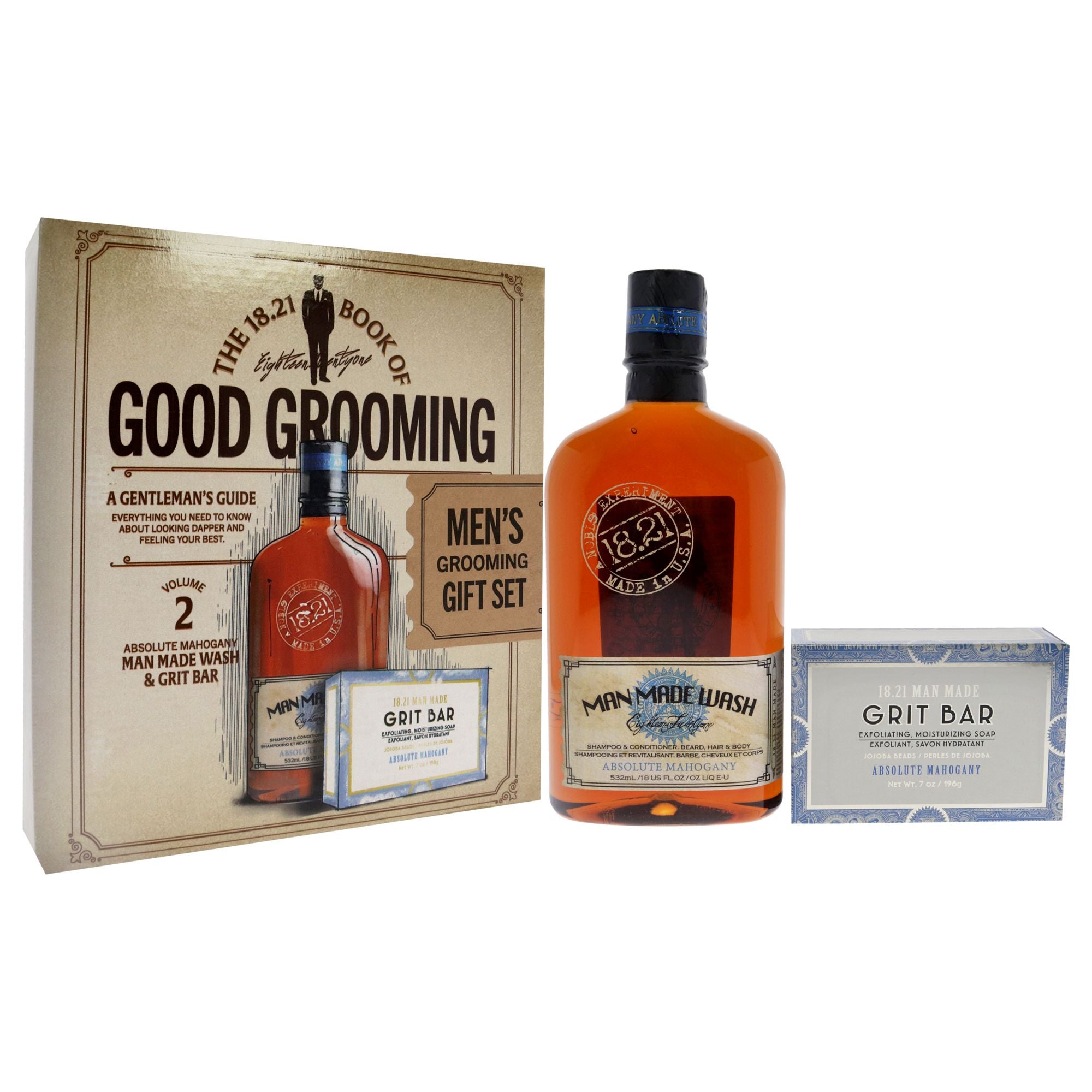 Book of Good Grooming Volume 2 Set - Absolute Mahogany 3-In-1 Shampoo, Conditioner and Body Wash, 7oz Grit Bar