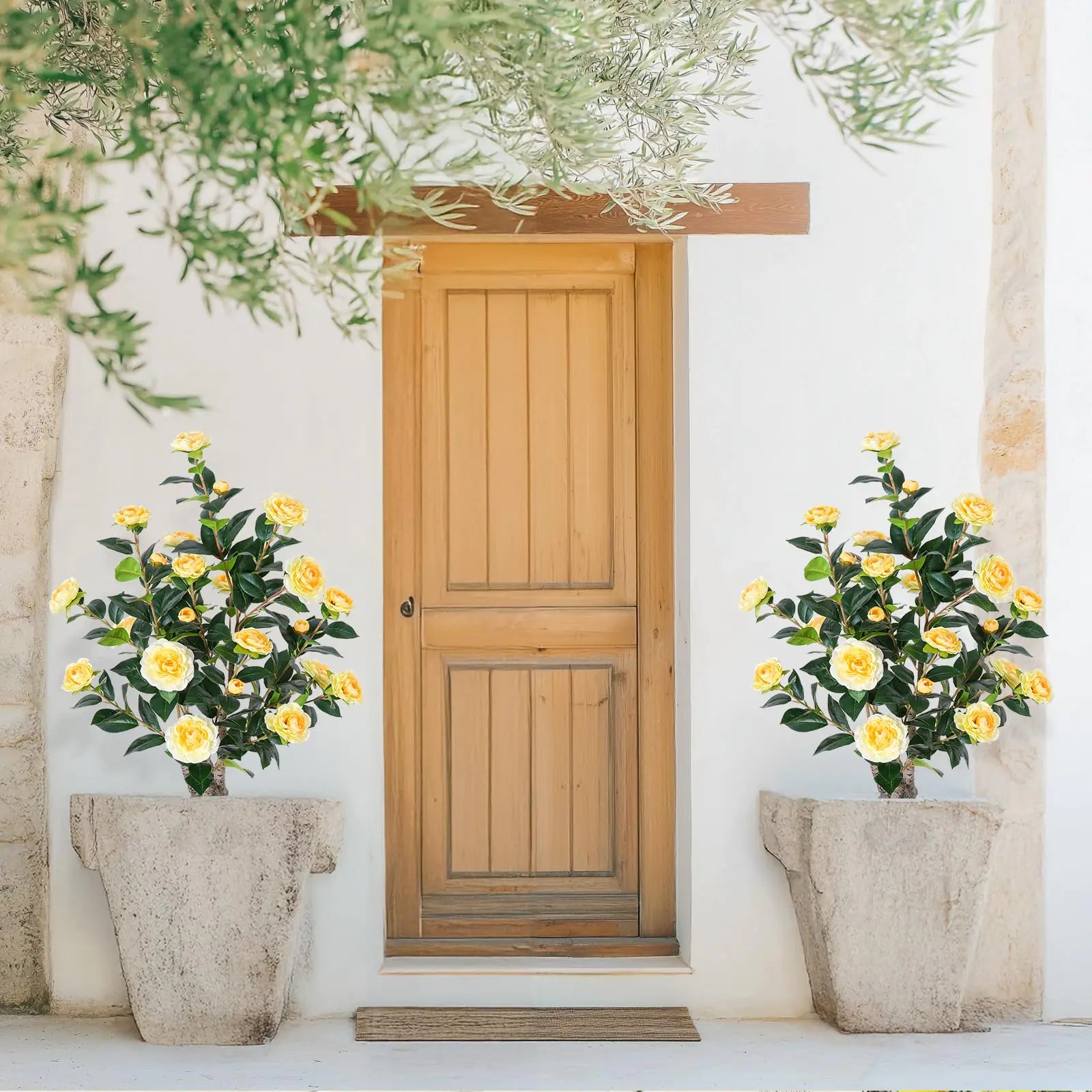 2 pcs Pack Yellow Artificial Camellia Tree - 39 inch
