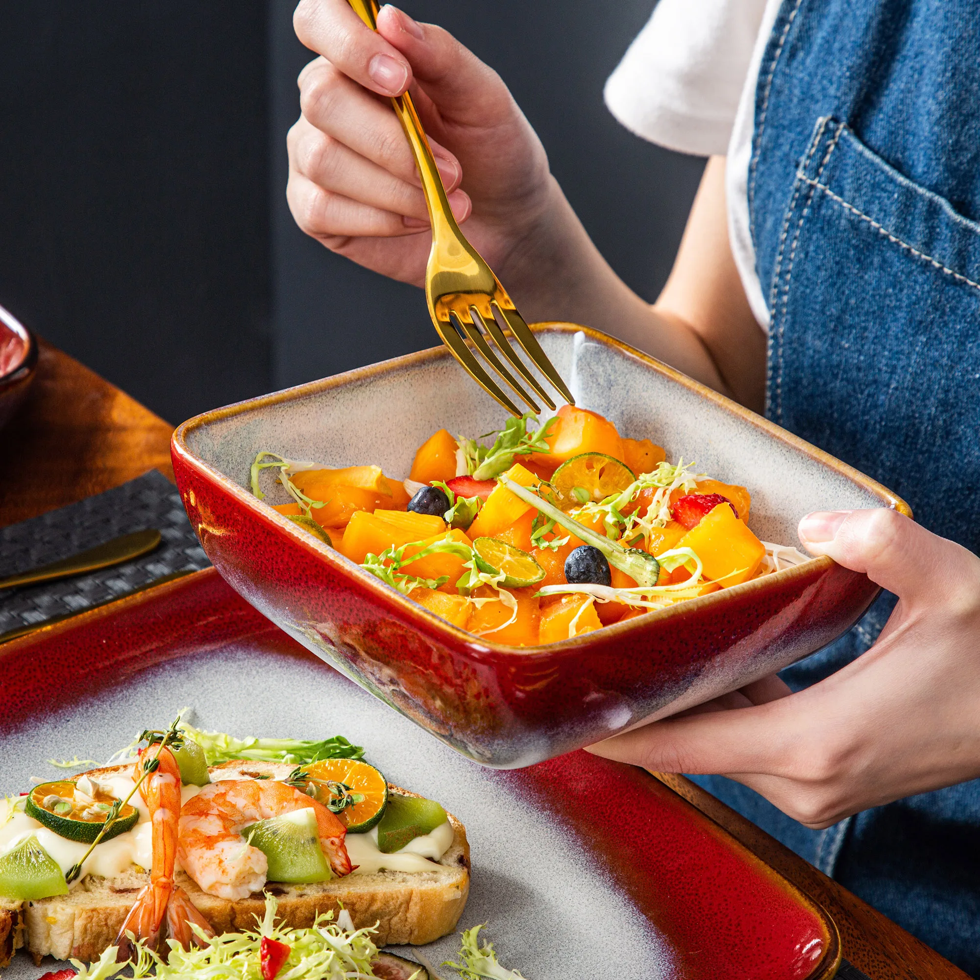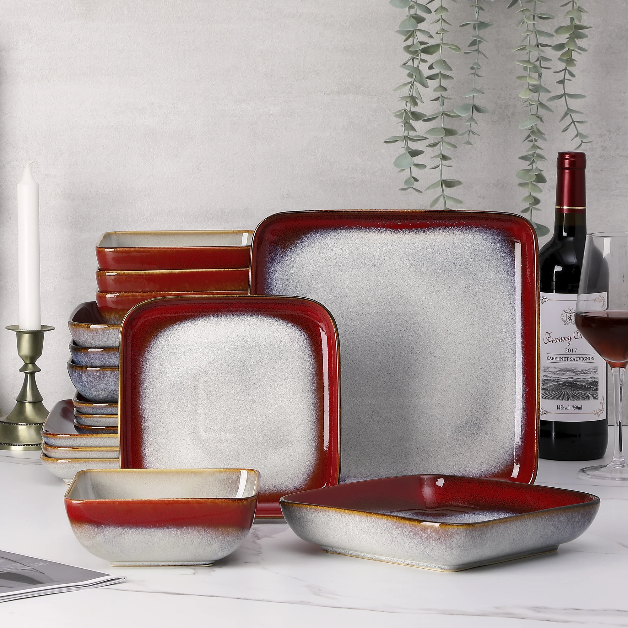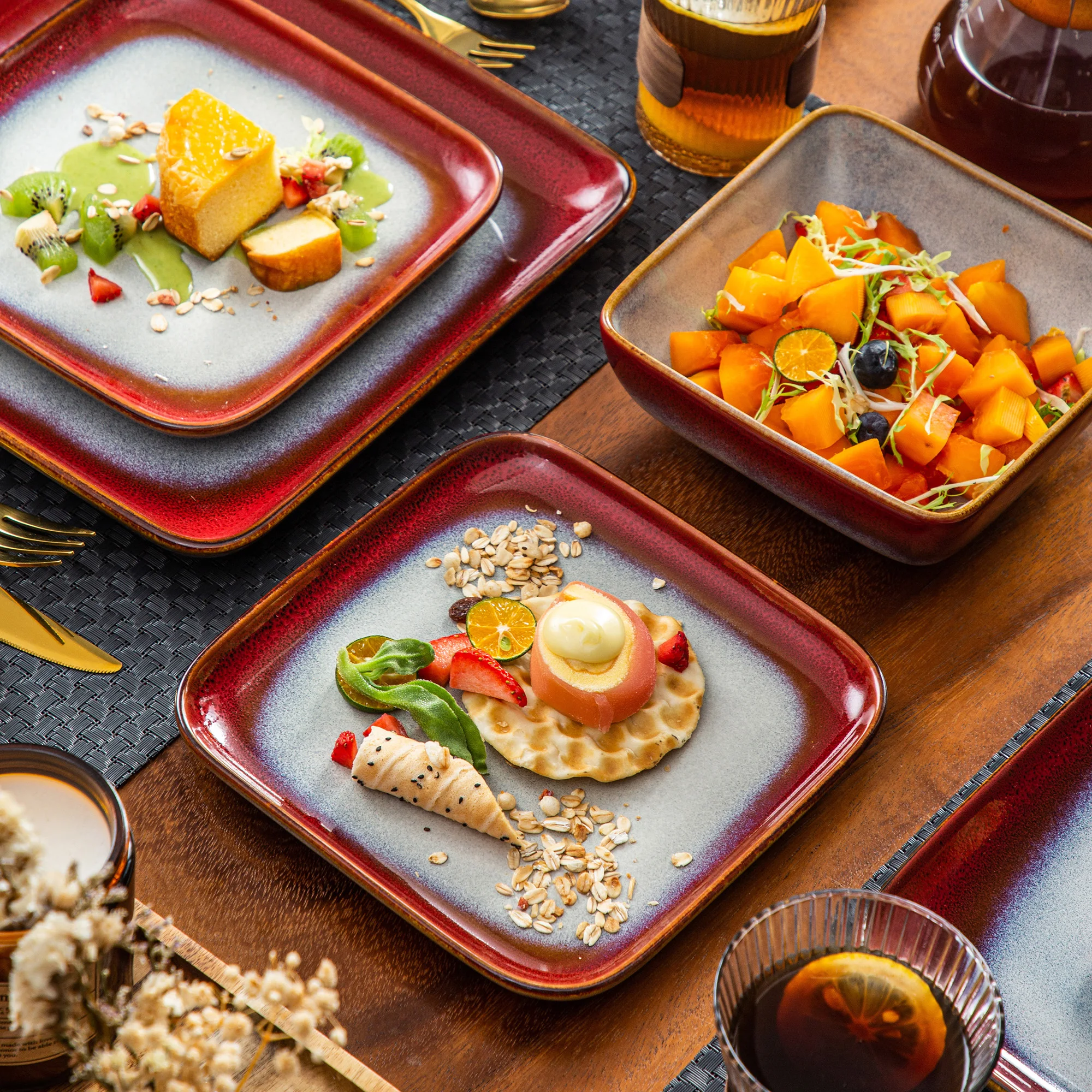 Vancasso Red Square Kiln Change Glaze Tableware Set
