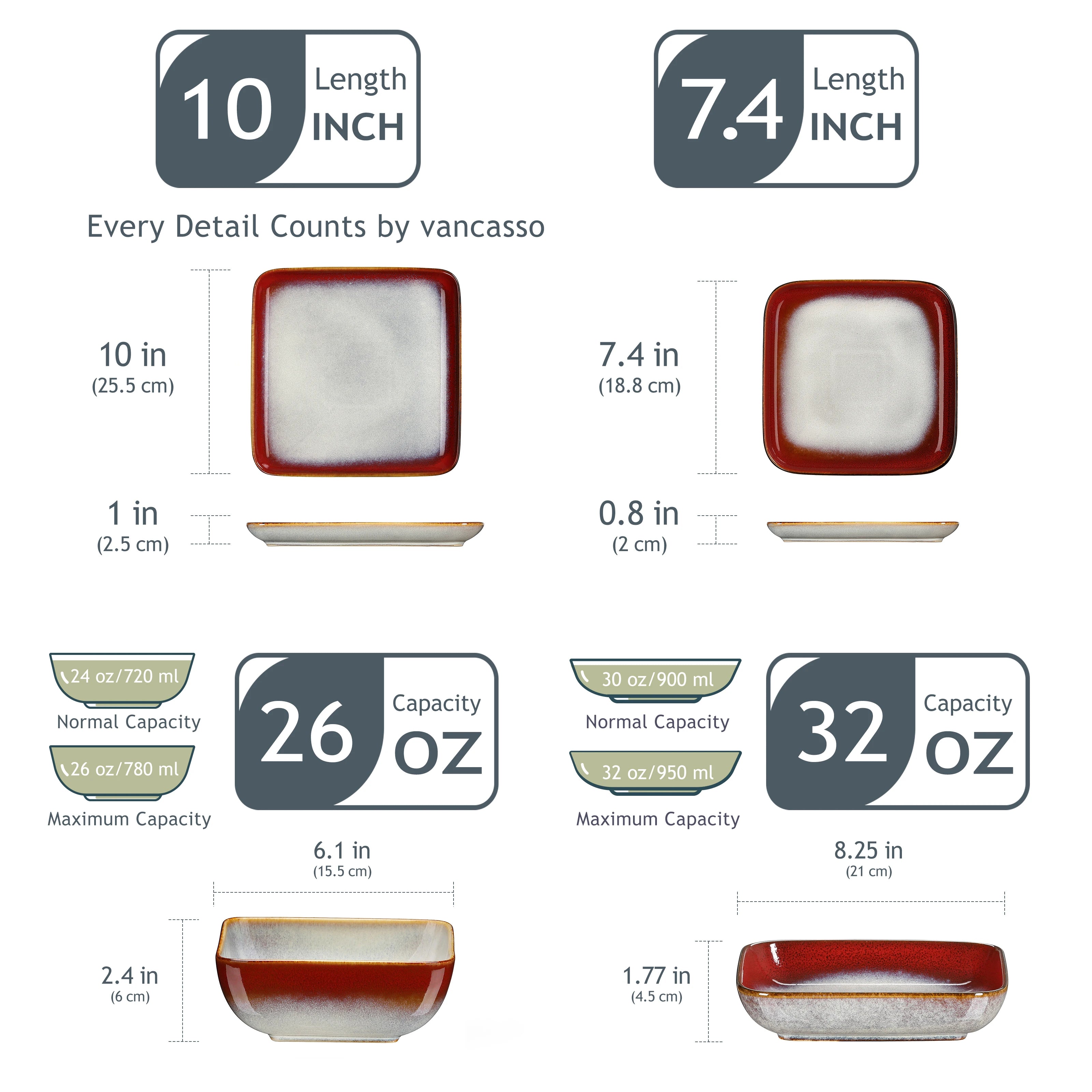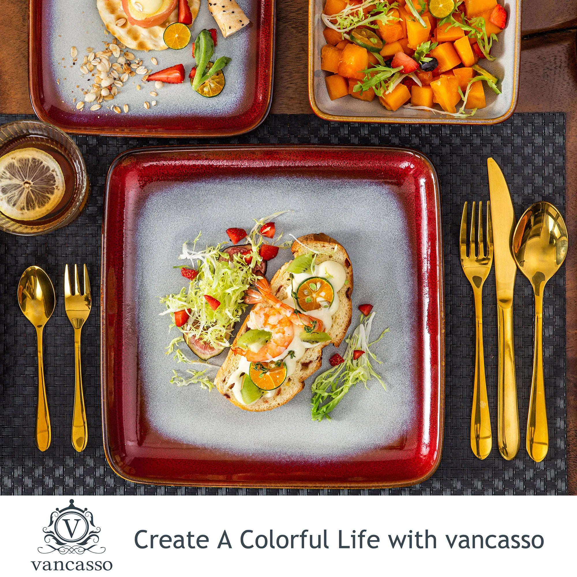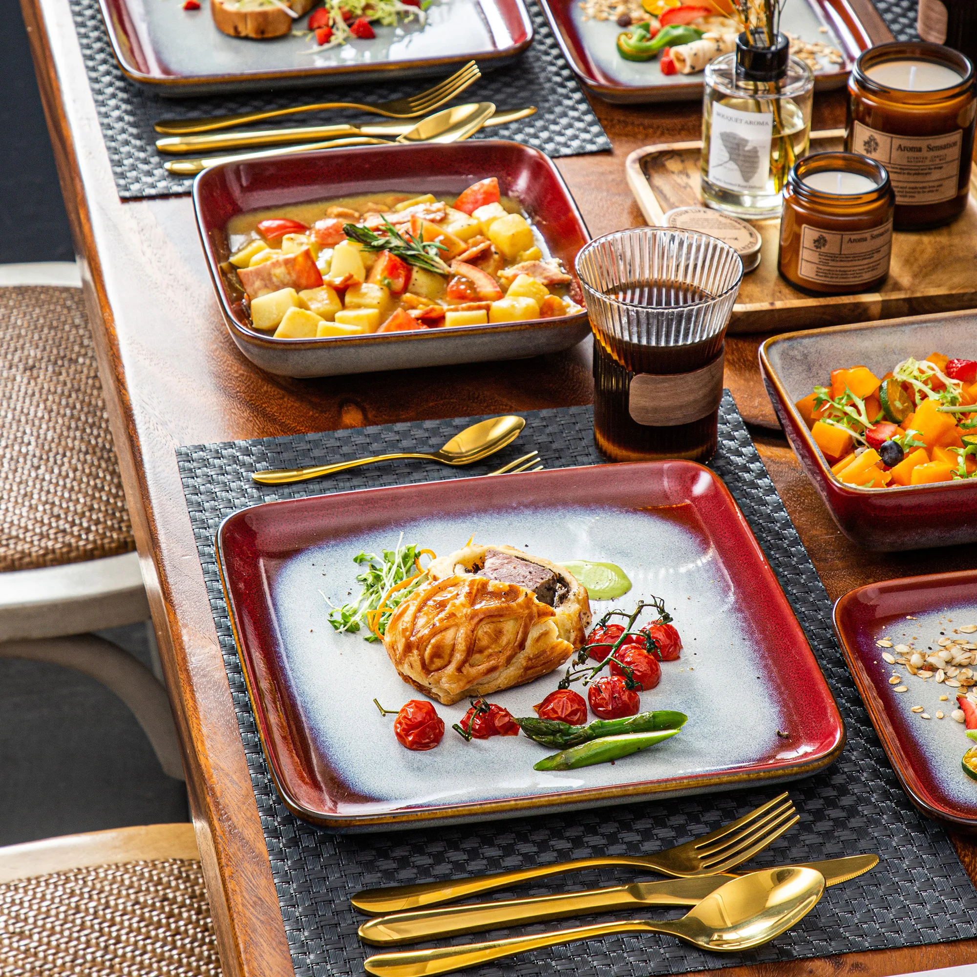 Vancasso Red Square Kiln Change Glaze Tableware Set